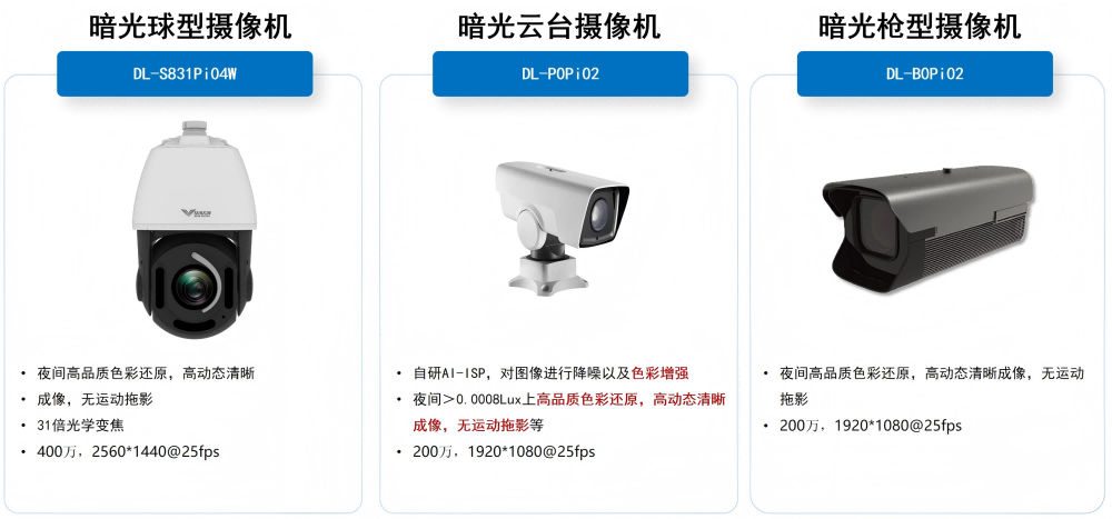 918博天堂(中国)暗光摄像机是一款基于深度学习、人工智能处理技术的创新产品,顺利获得实时增强视频信号,显著突破传统技术瓶颈,在微光、极微光及无补光环境下仍能实现高清晰度、全帧率、无拖影的彩色成像。这一突破性技术不仅解决了夜间监控难以获取彩色图像的难题,更为进一步图像分析等智能化应用给予了高质量数据。