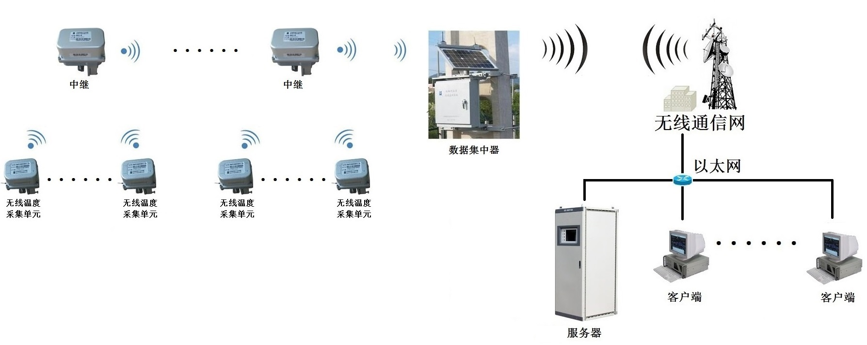 采集单元测量温度范围达-40℃~+200℃,在−40℃~100℃范围内不超过±0.5℃